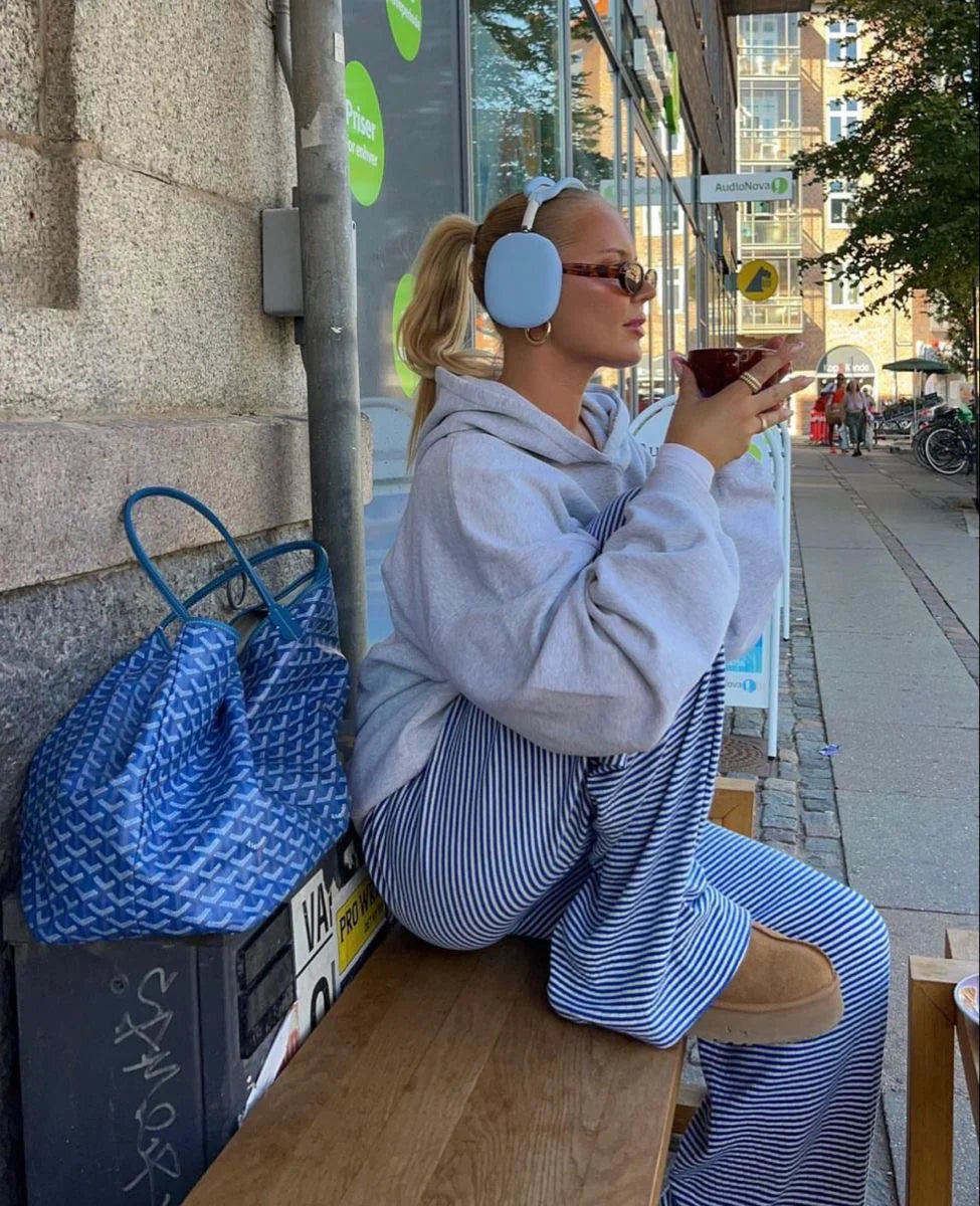 Soft as pyjamas, styled for the streets. These striped trousers feel weightless on your skin and flex with your day—whether you’re relaxing at home, grabbing coffee or dressing up for brunch. One pair, endless ways to wear.